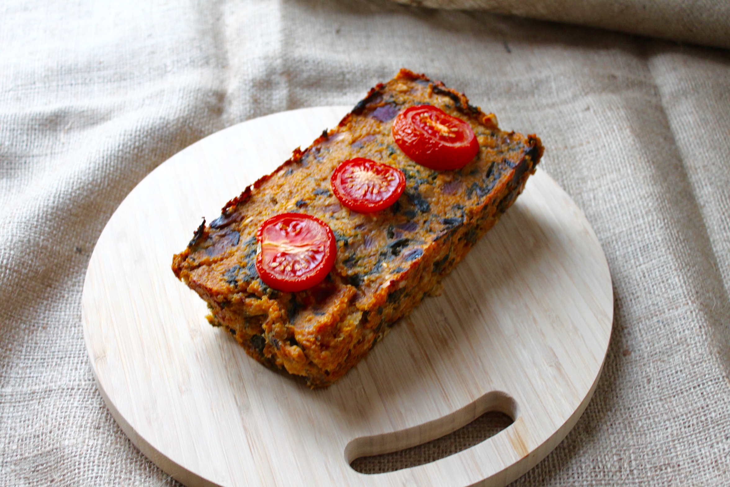 Pour the mixture into the prepared loaf tin and place slices of tomato across the top if you wish. Place in the middle of the oven and cook for 50-60 minutes.