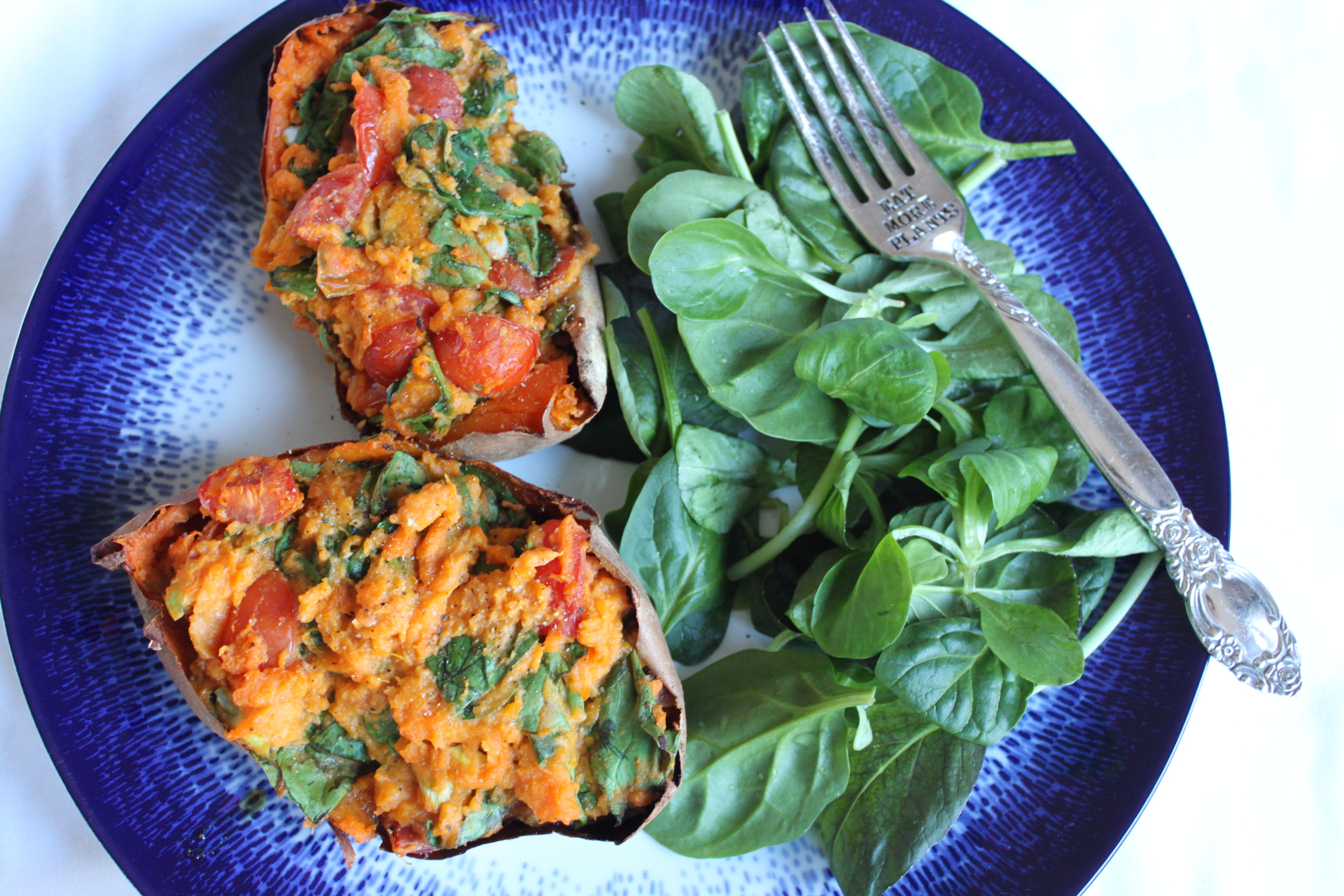 There is something so comforting about a baked potato, you can pretty much top them with anything and you get a great filling meal. This recipe works well with either sweet or white potatoes, I just happen to prefer sweet potatoes.
